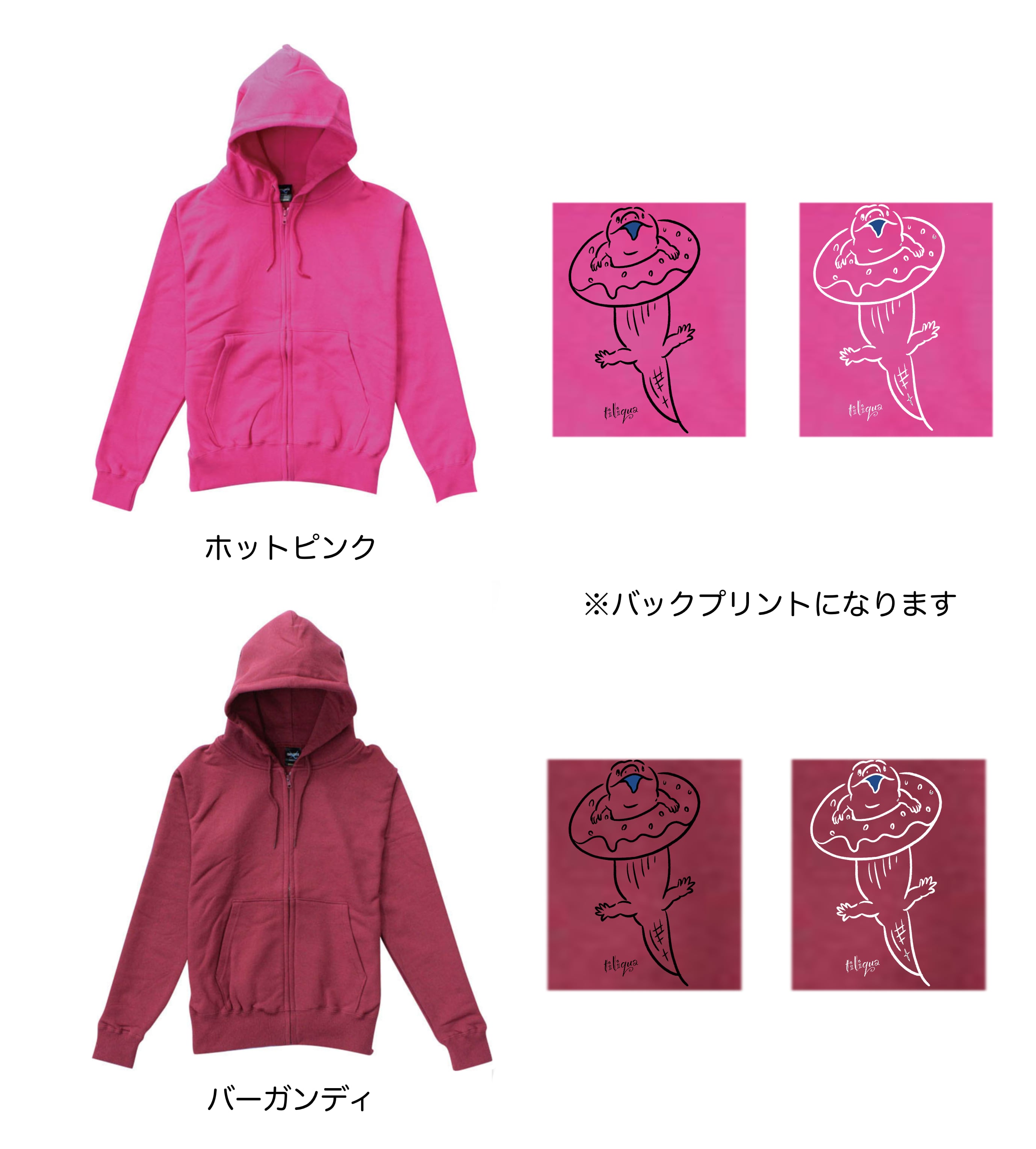 アオジタドーナツにジップアップパーカーの登場です(バックプリント)