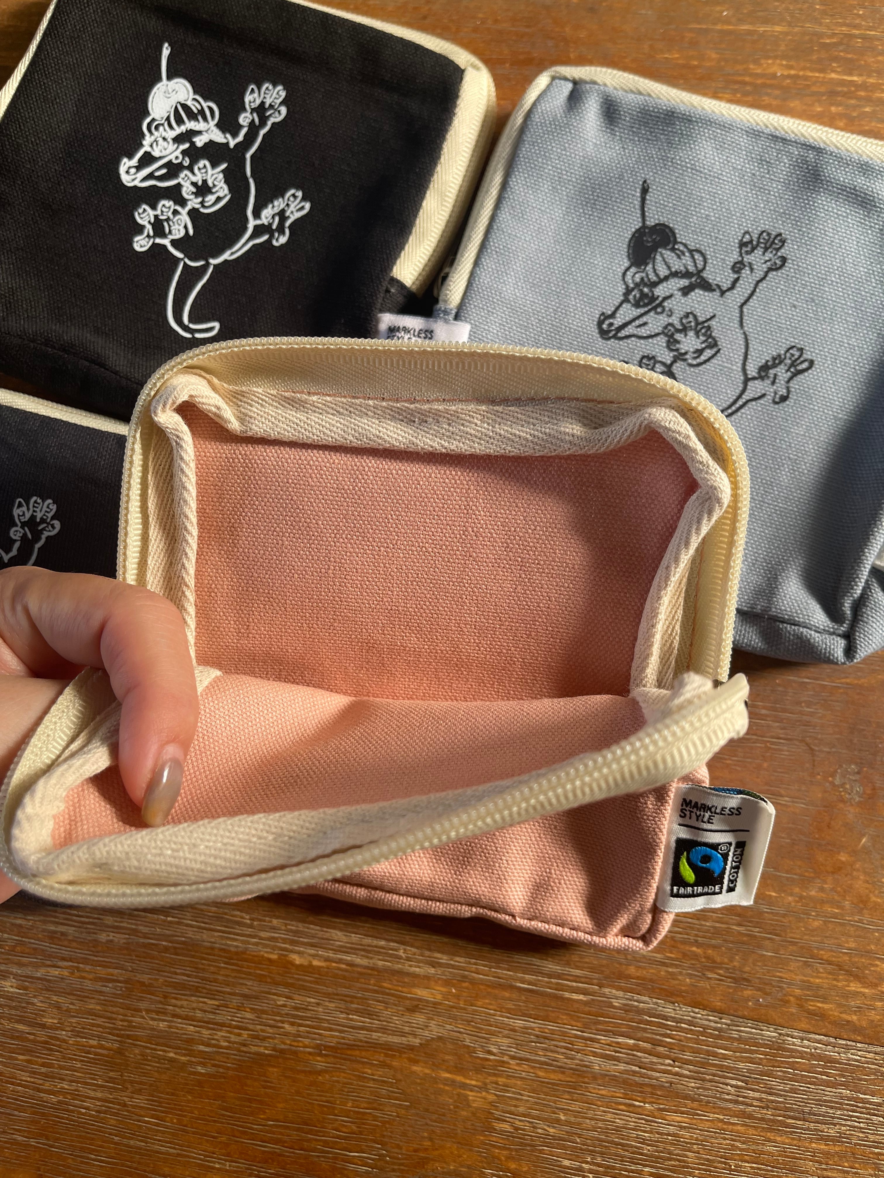 環境と人に配慮した、フェアトレード認証のオーガニックコットンを使用したスクエアポーチです